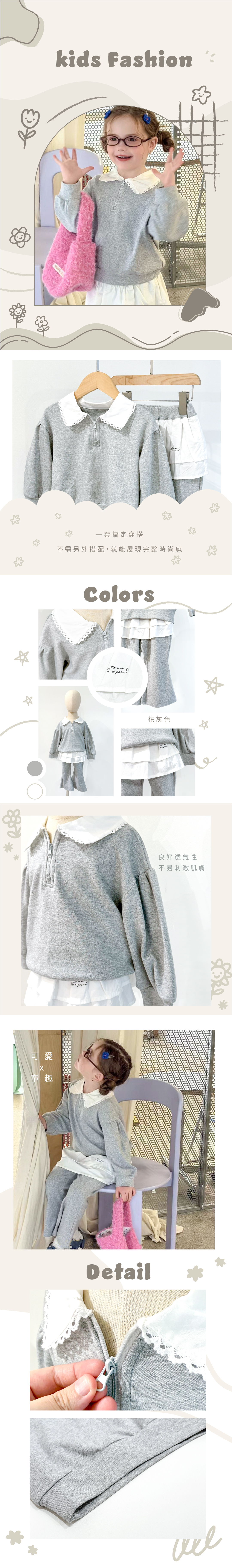 ▹ 乾淨的灰白色調,搭配細緻蕾絲翻領,簡約中帶點小優雅,是屬於女孩的低調可愛。