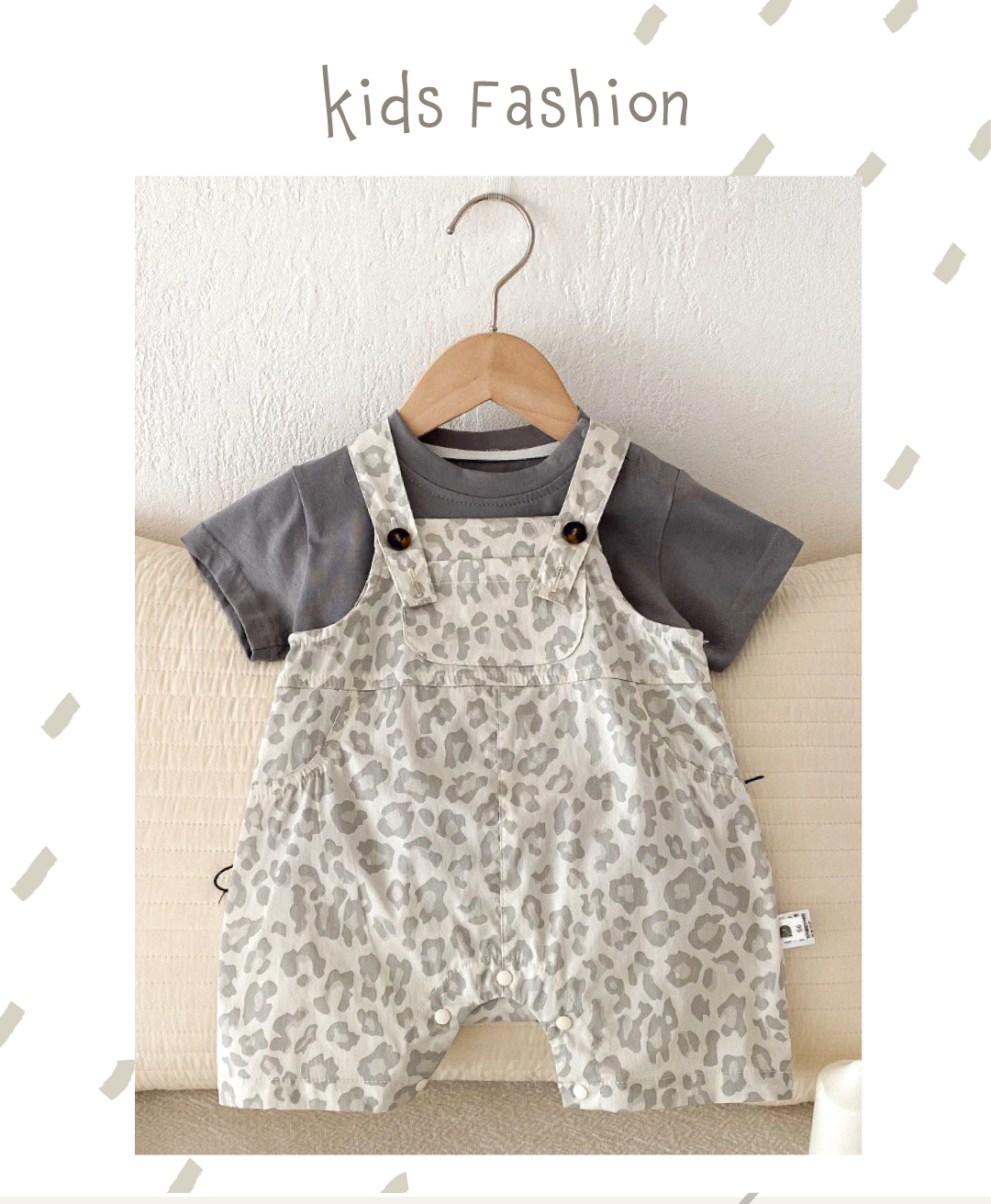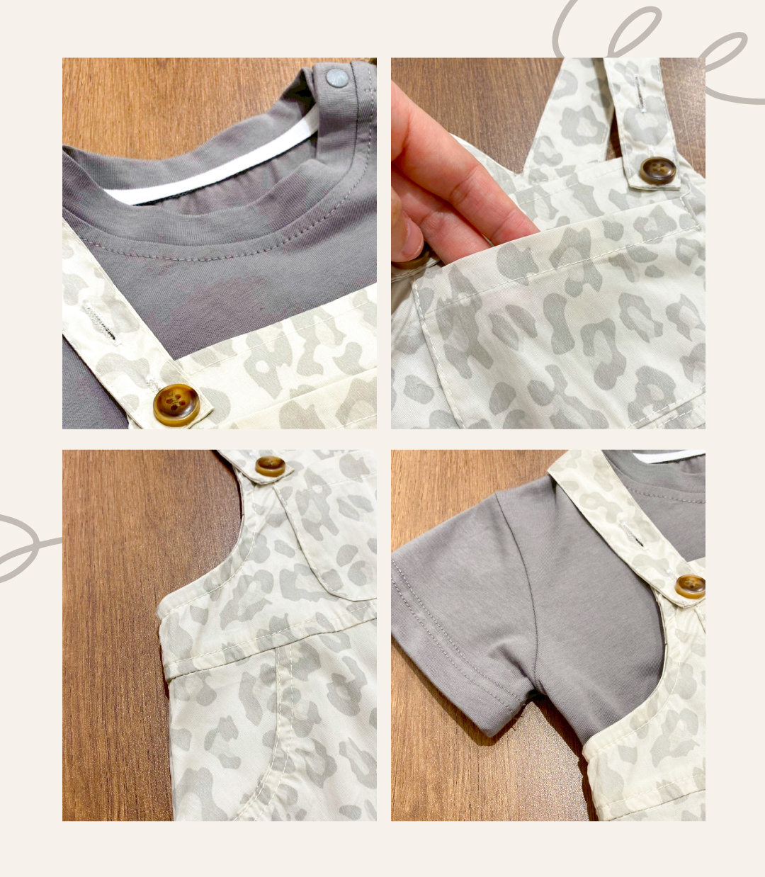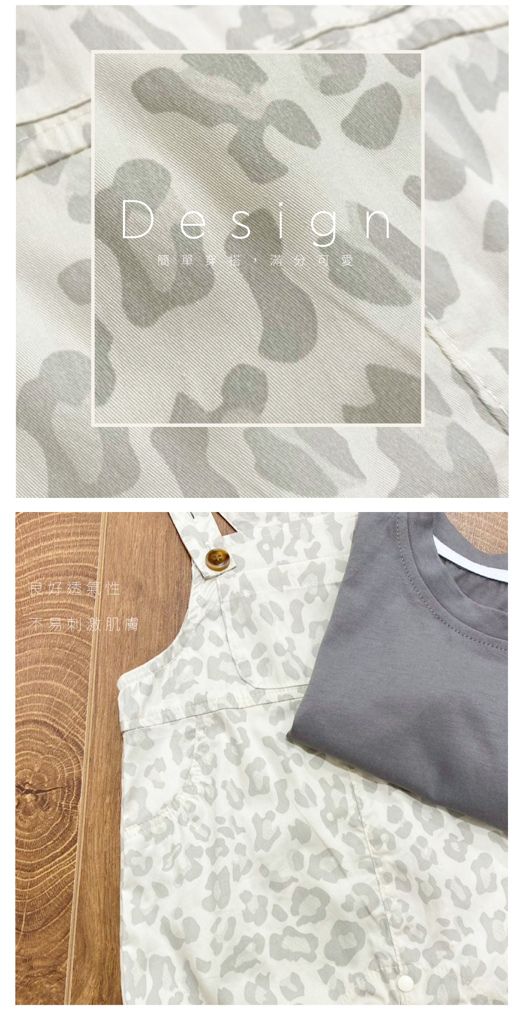▹時尚豹紋吊帶短褲搭配簡約純色短袖上衣