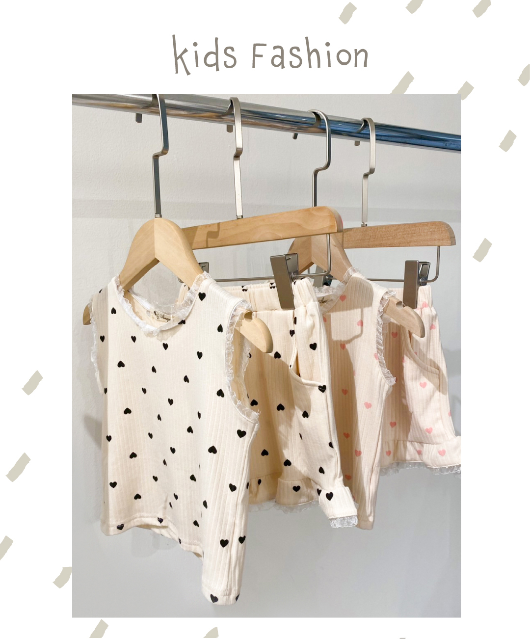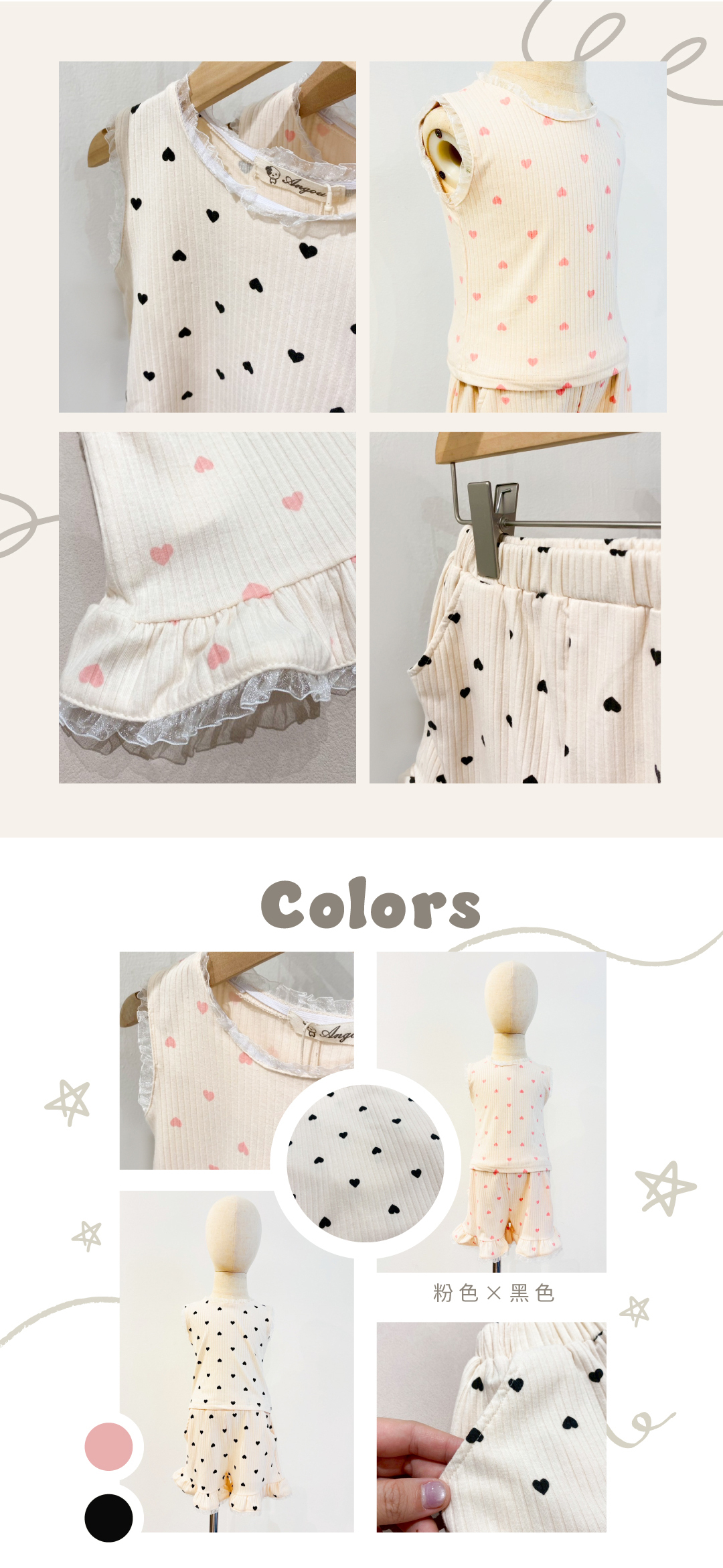 ▹細節拿捏得剛剛好,蕾絲邊+愛心點綴=夏日必備質感童裝。