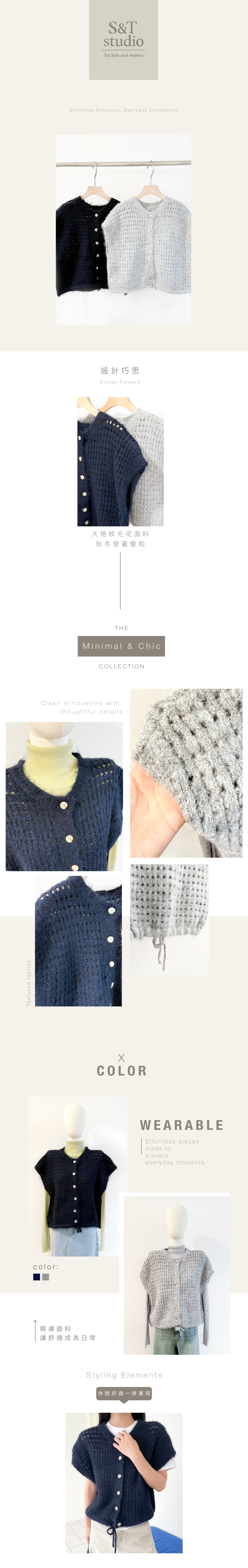 ▹ 秋日氣息剛剛好,就從這件小心機背心開始。柔軟的針織紗線搭配鬆鬆鏤空織法,提升透氣性。