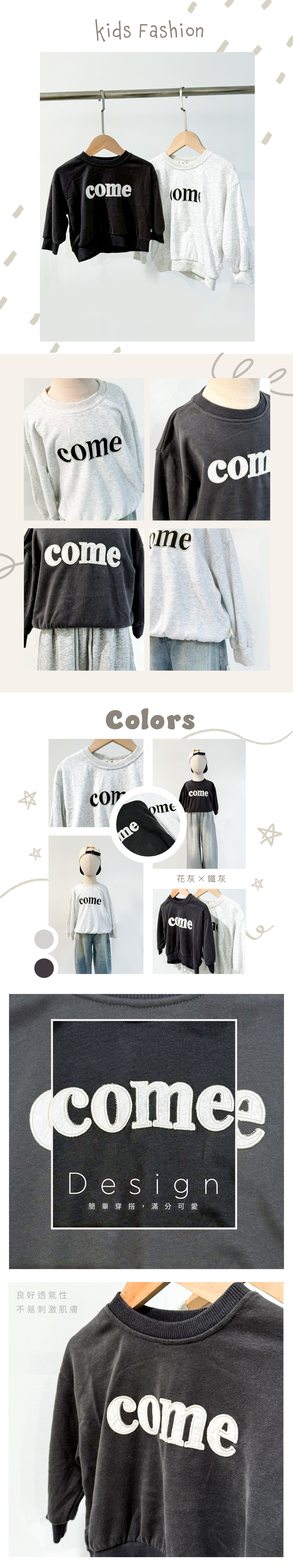 ▹簡約字母設計,寬鬆落肩剪裁讓寶寶活動自在,展現韓系休閒感。羅紋袖口與下擺設計,增加份量感又不易變形。