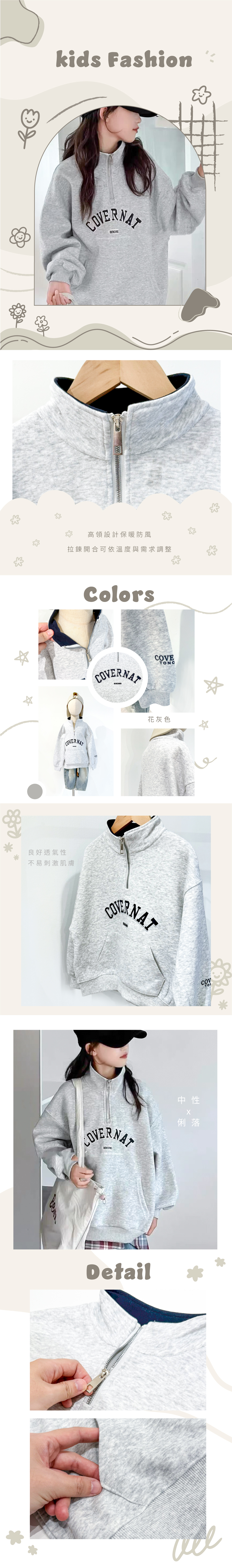 前半開拉鍊設計,方便穿脫,不用太多裝飾,一件大學T就足夠有型。