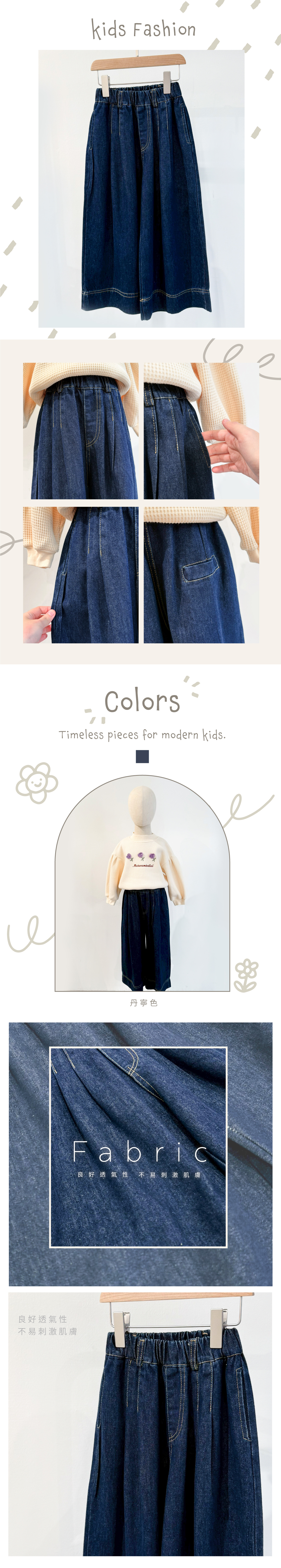 ▹ 柔軟牛仔布料,寬版剪裁修飾腿型,彈性鬆緊腰設計方便好穿脫。簡約車縫線細節增添立體層次,展現日常高級感。