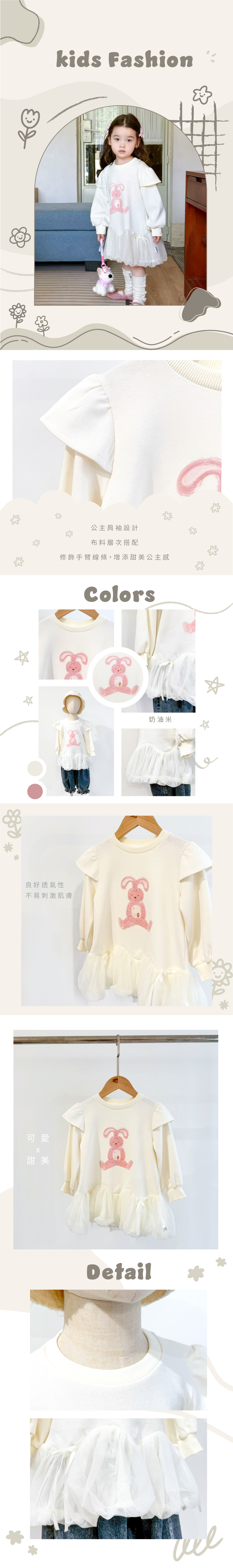 ▹ 這款長版上衣以童趣手繪風小兔作主角,下擺拼接蓬蓬紗,穿出洋裝感,一件搞定外出造型,甜美又有層次!
