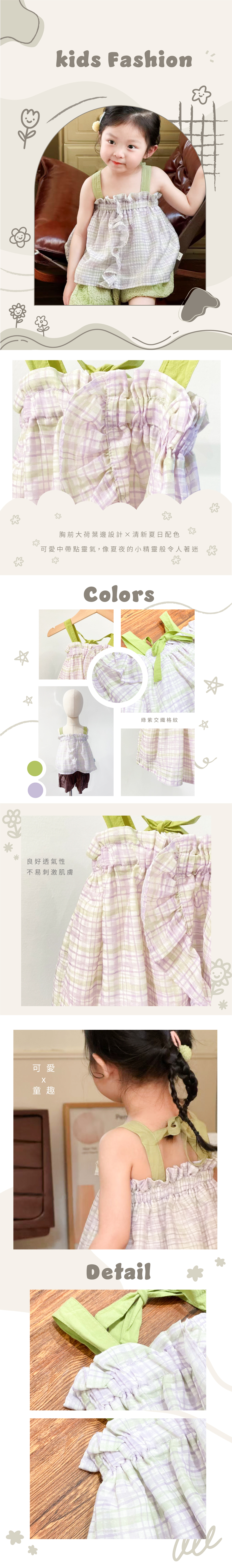 ▹ 清爽的綠紫格紋,為夏日增添一抹復古可愛的氛圍。