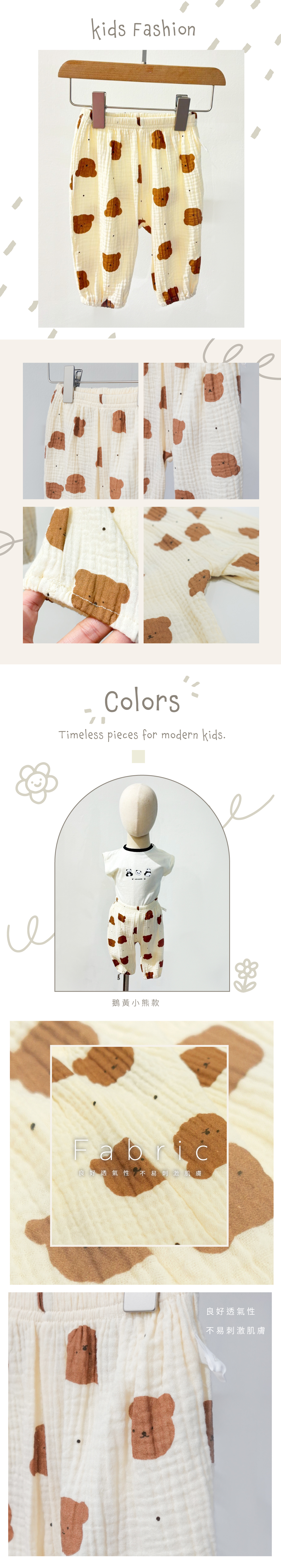 中性設計,男寶女寶都適合穿搭。紗布材質快乾性高,洗完輕鬆曬一曬就能穿。