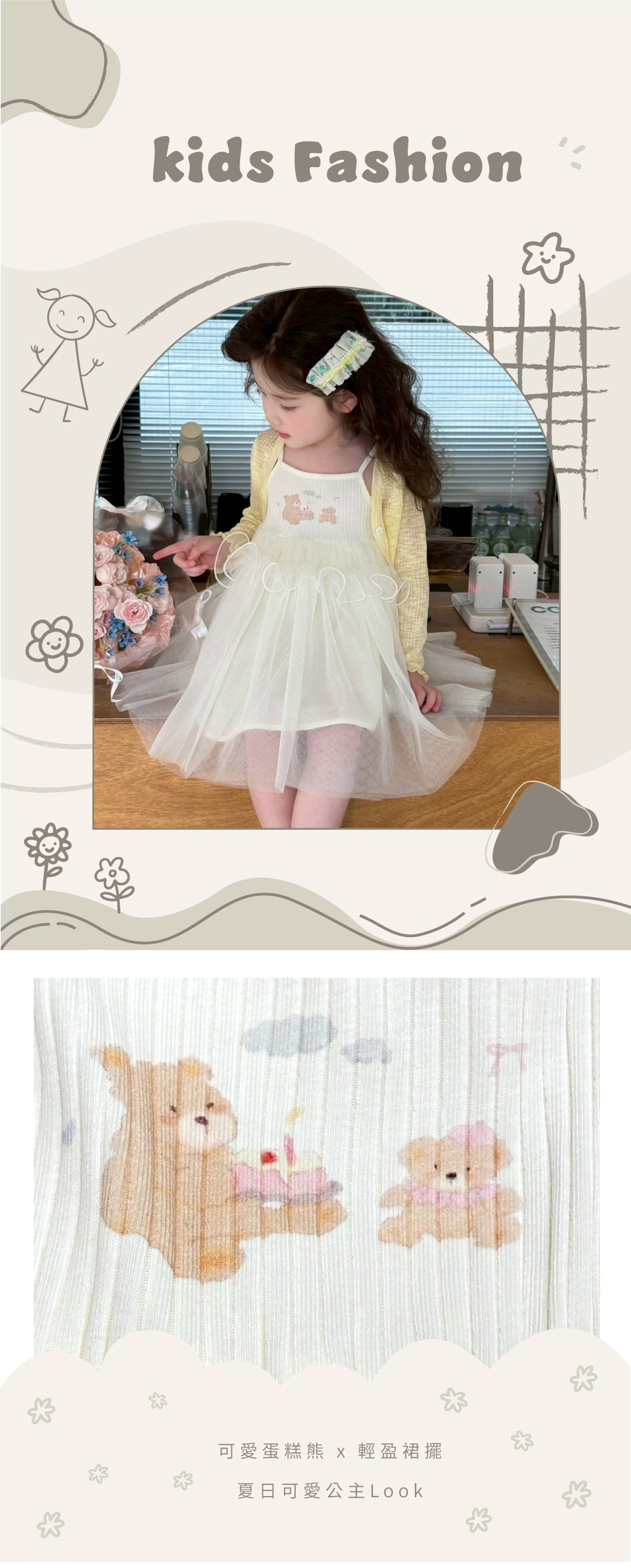 手繪插畫風可愛蛋糕熊+輕盈拼紗,甜美不膩、可愛剛剛好