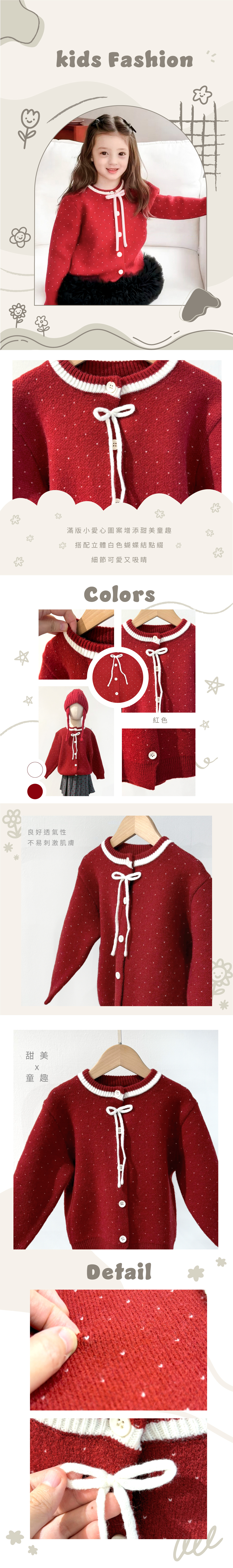 ▹ 溫柔酒紅色針織底,點綴細緻小白點,像灑落的糖粉般可愛不甜膩。