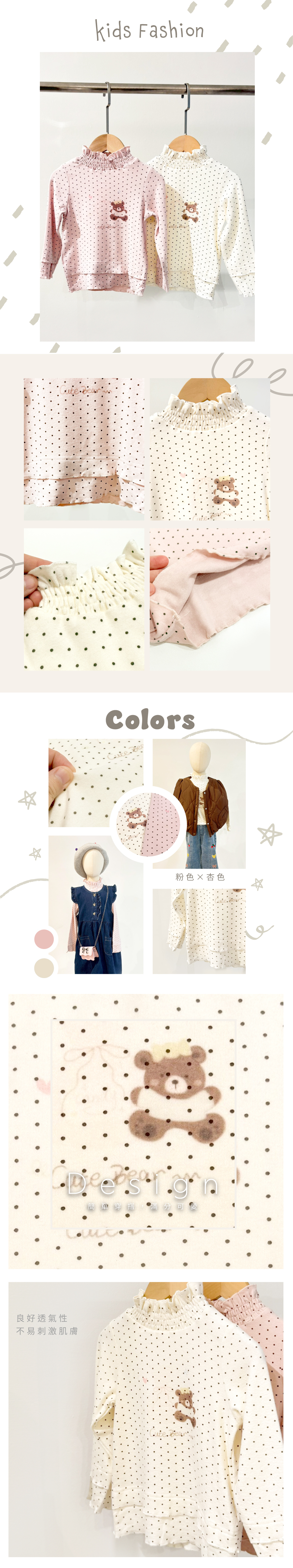 滿版細點點圖案,柔甜不做作,氣質加分,溫柔粉/杏色,都是衣櫃裡好搭不挑人的基本色。