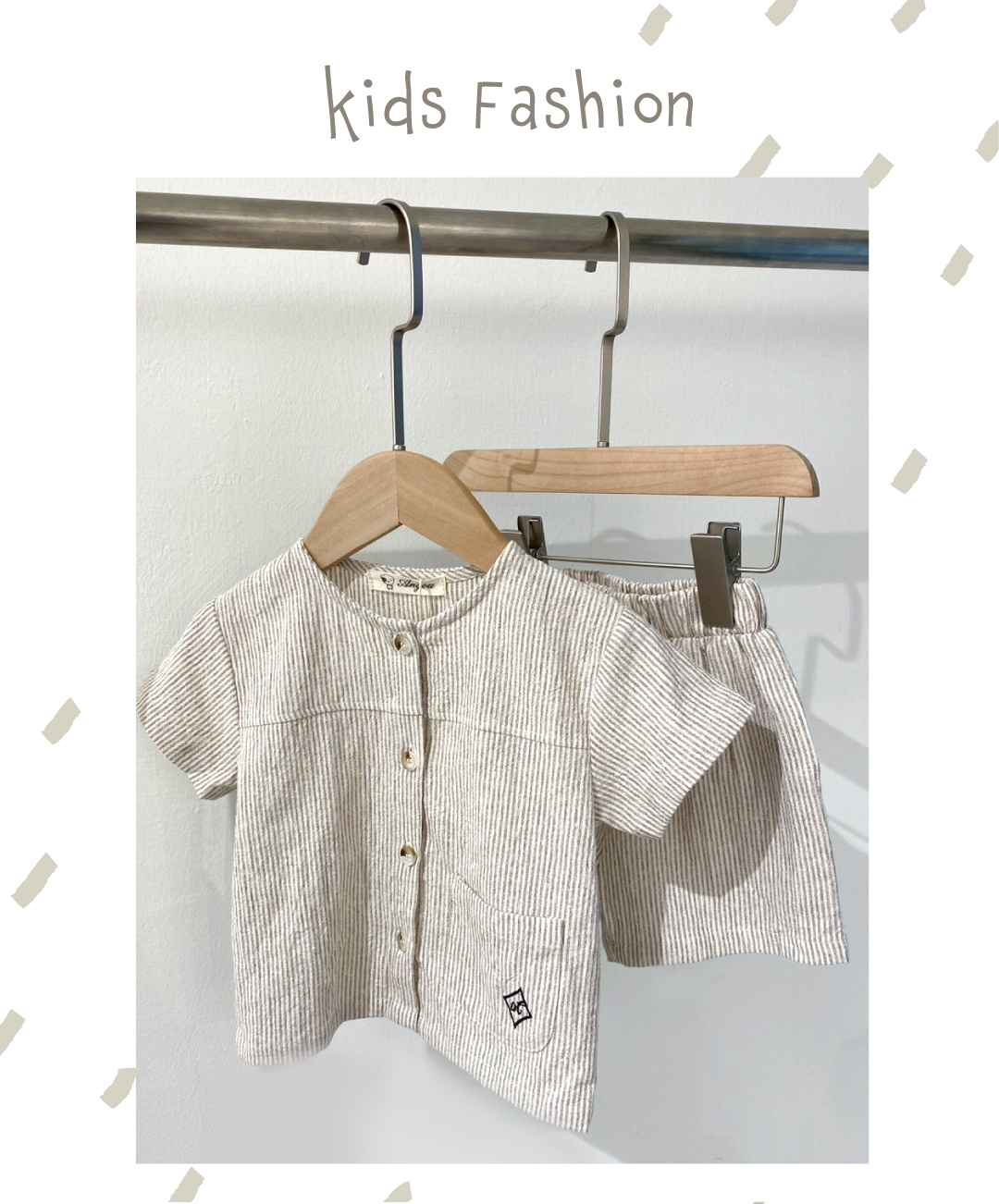 ▹無領設計+細直條紋,自帶文青氣息