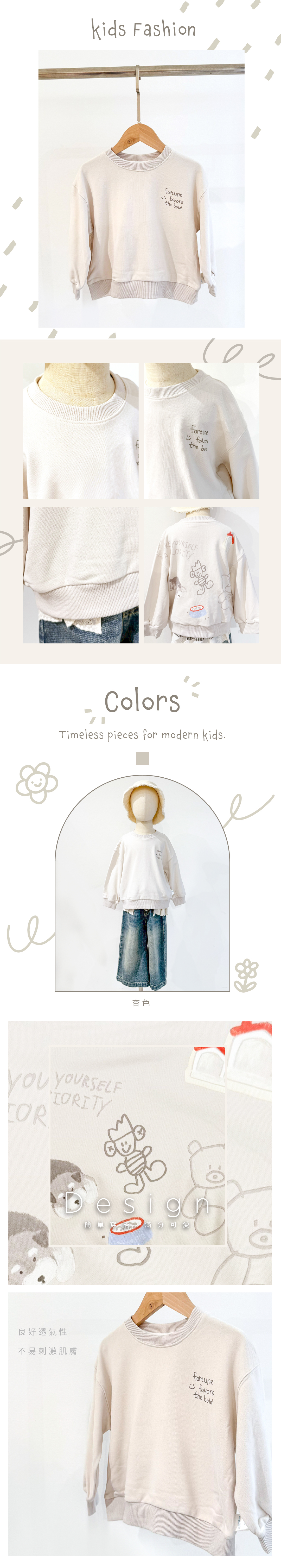 手繪感塗鴉+舒適落肩剪裁,不需要複雜搭配,一件背面有戲的大學T就夠。無性別設計,男孩女孩都能輕鬆駕馭。