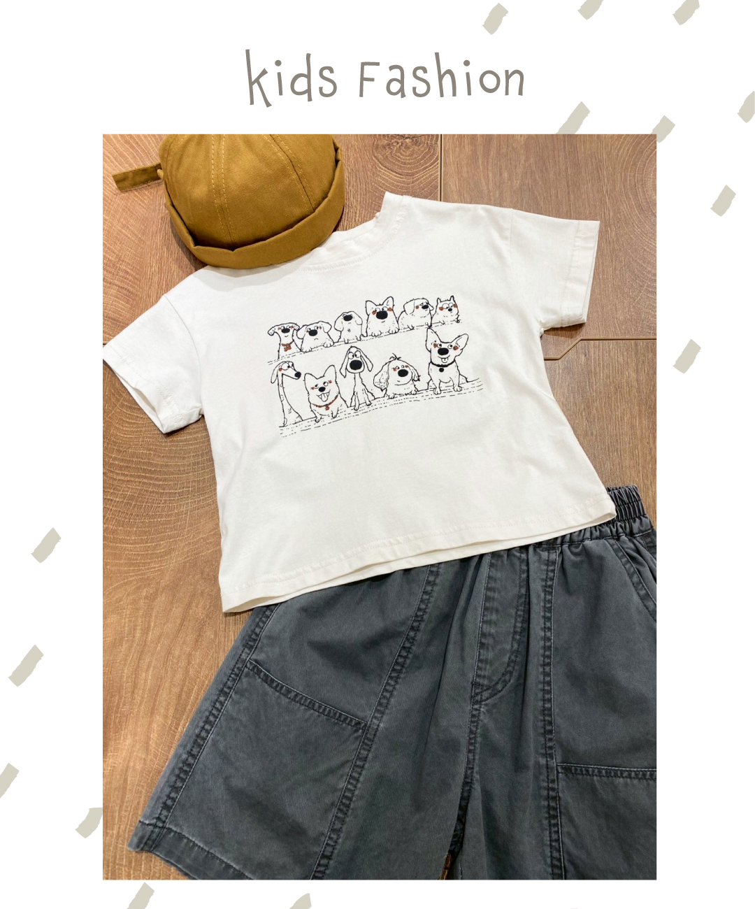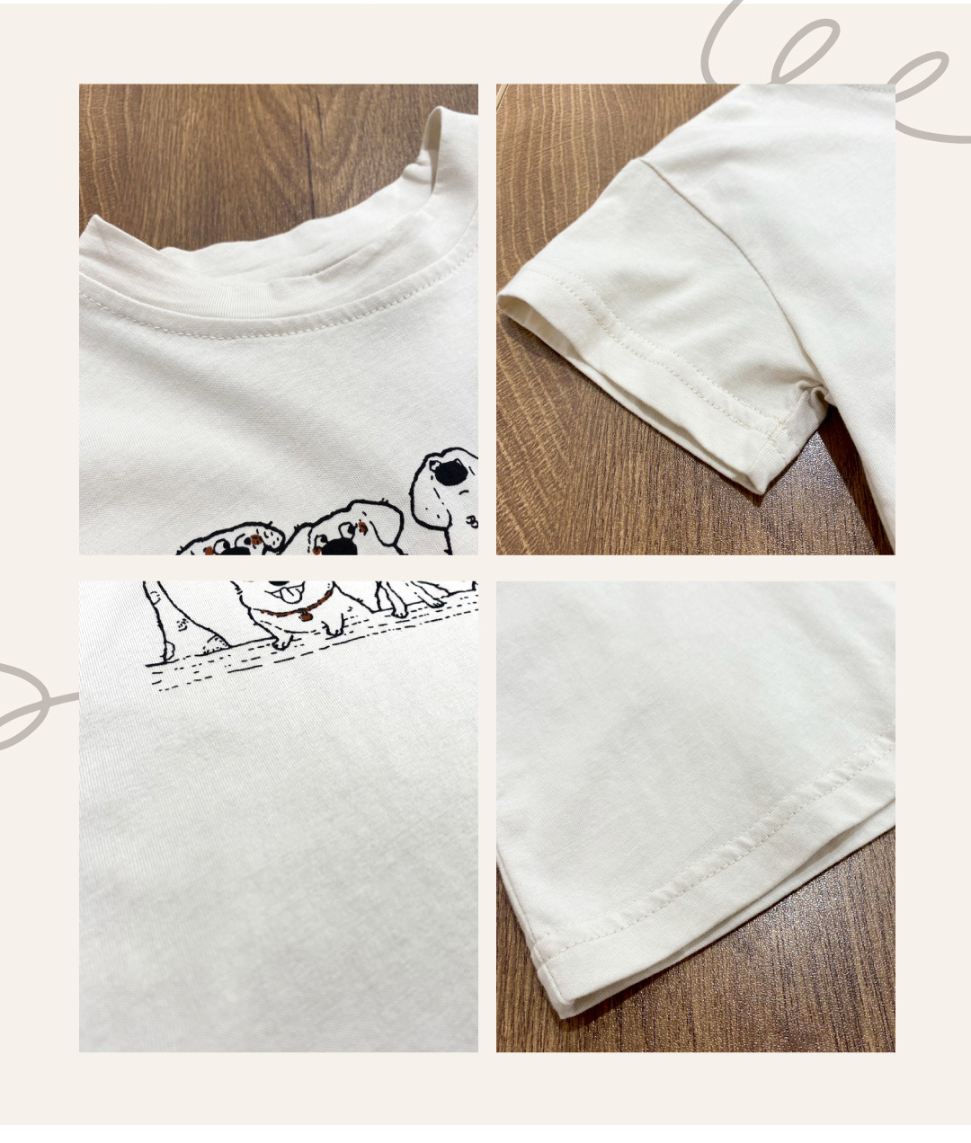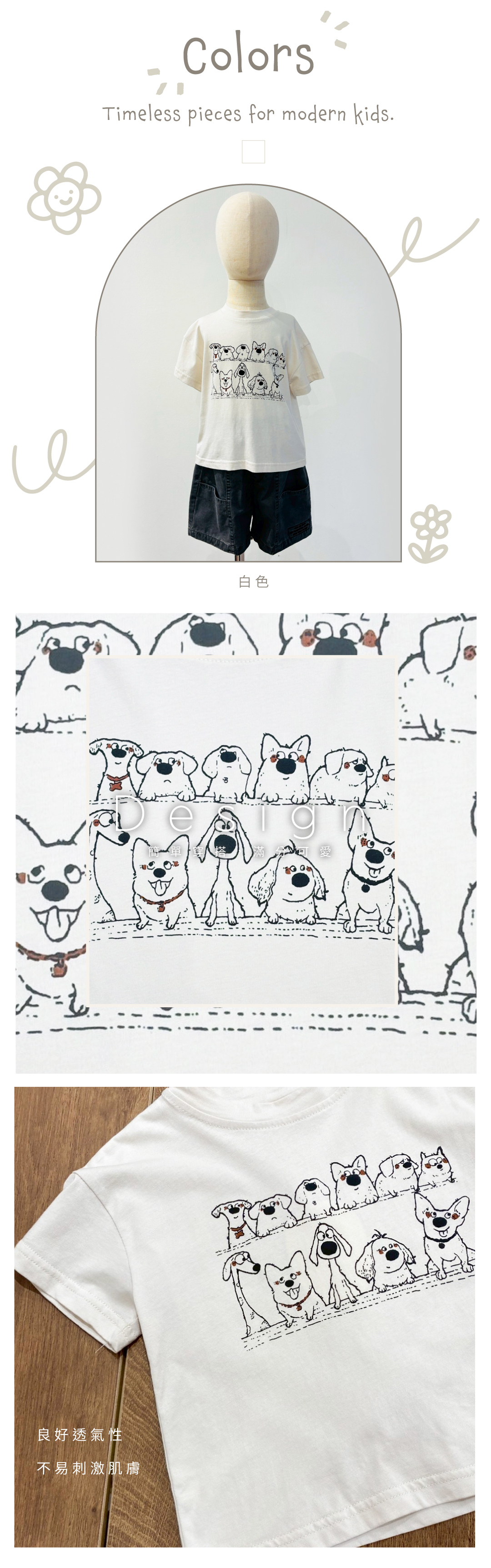 ▹以童趣手繪風格呈現一整排可愛小狗圖案