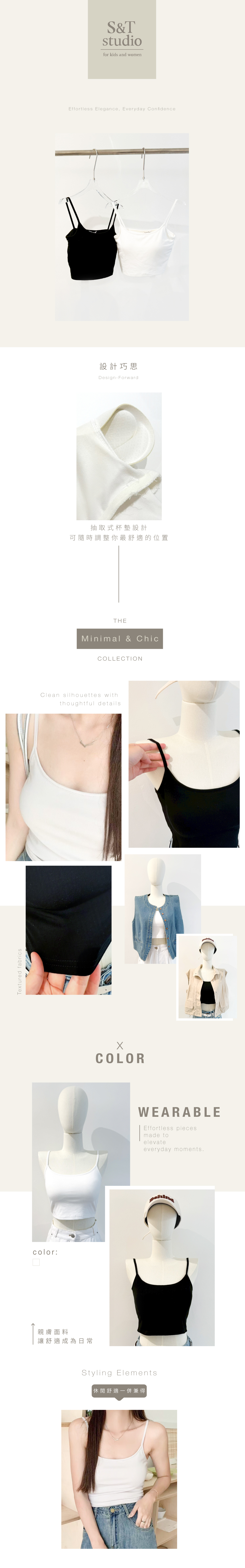 ▹ 輕鬆搭出質感日常,自由舒適零束縛。一件能「外穿」又「內搭」的實用單品,細肩胸墊小可愛將細緻的剪裁與舒適的面料融合。