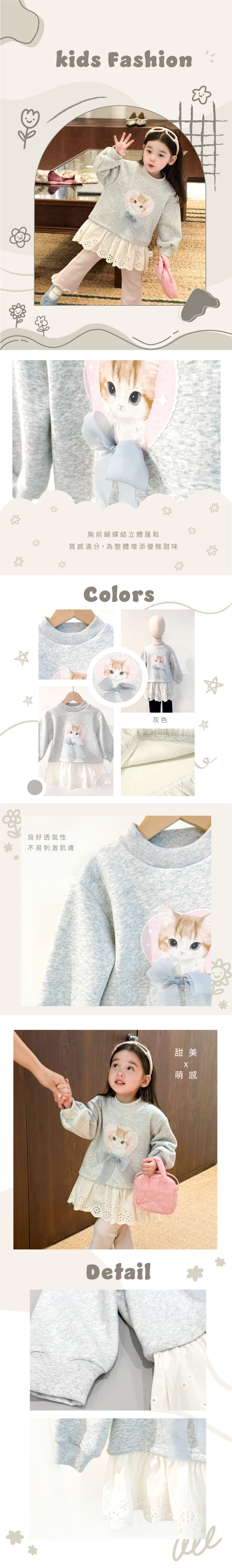 頸部不緊勒羅紋領口,精緻緞帶蝴蝶結,增添夢幻質感,就像小公主出門的小祕密。