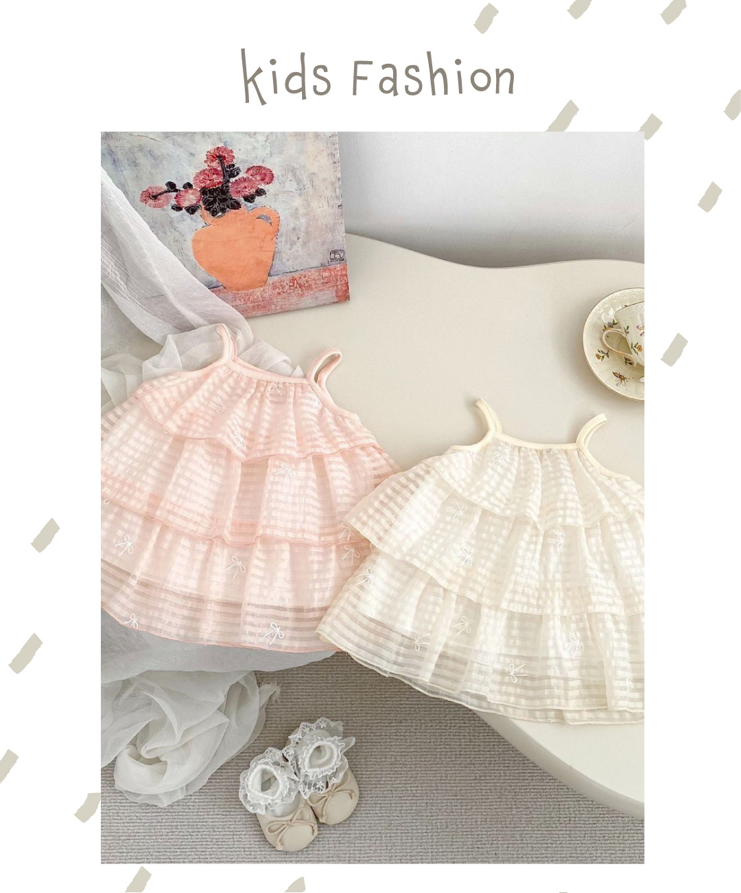 ▹超可愛的刺繡蝴蝶結吊帶蛋糕洋裝,讓每個小女孩都像是童話裡的公主