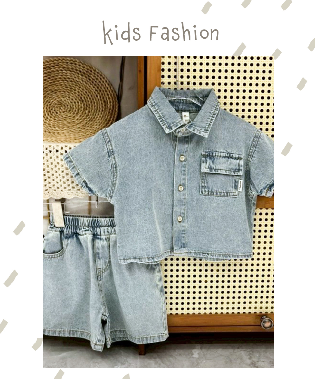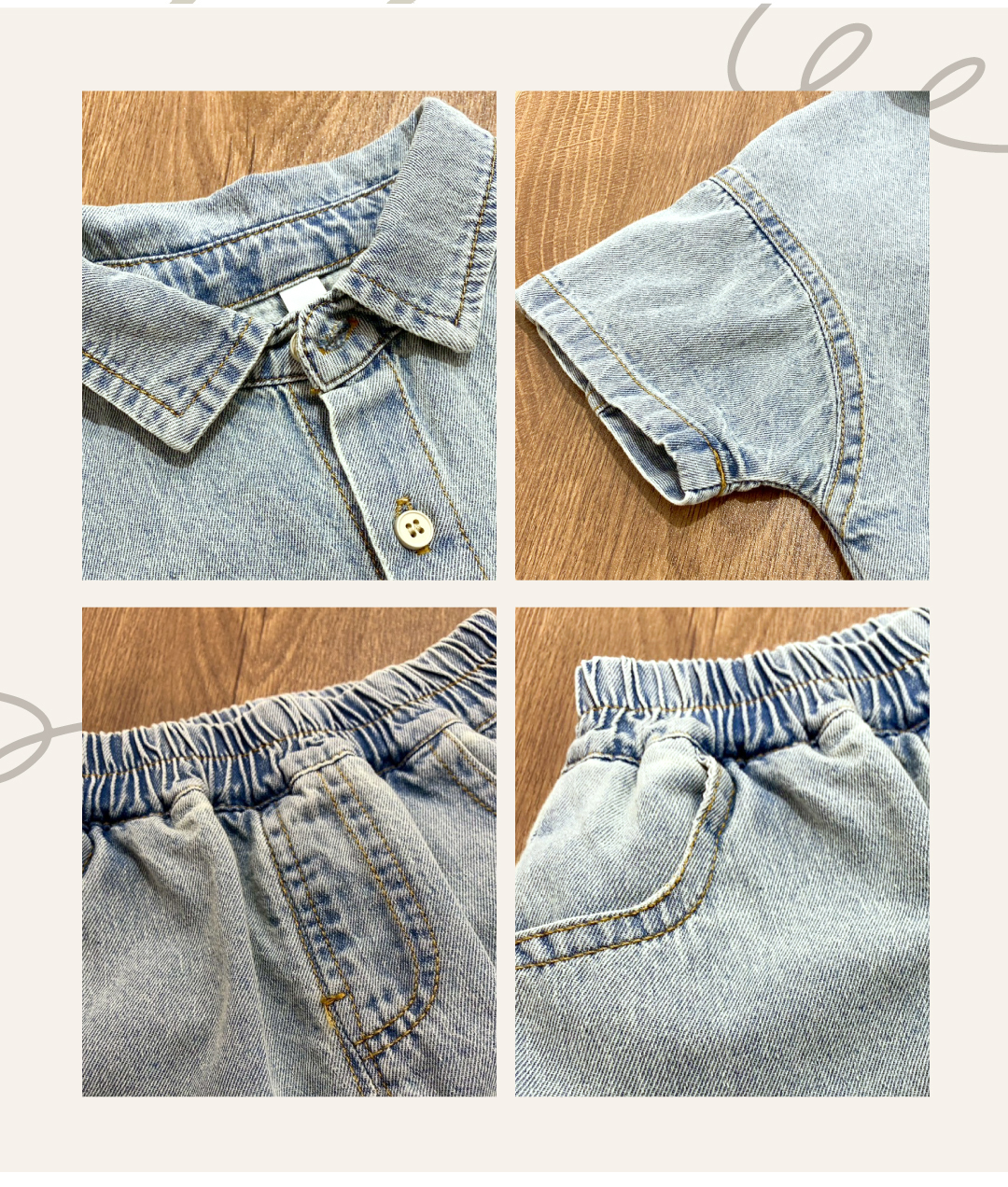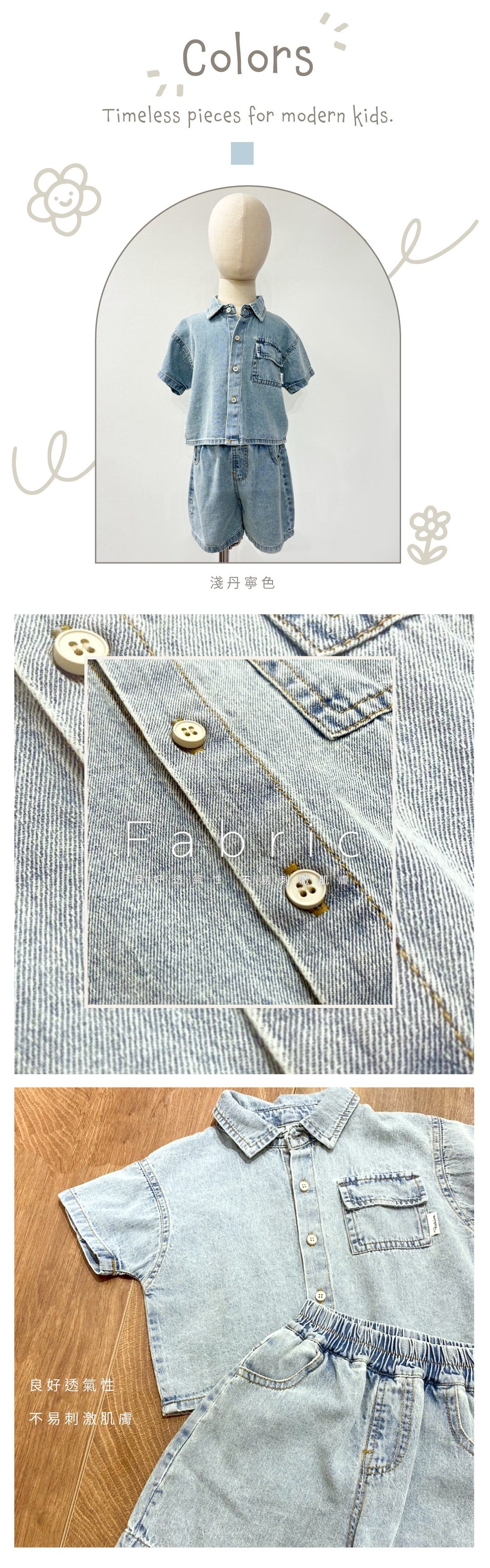▹經典不敗的丹寧藍,胸口袋蓋設計細節加分,兩件式組合好穿又百搭