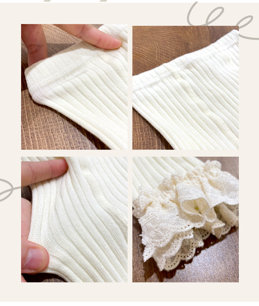 ▹ 褲管精緻蕾絲花邊設計,增添甜美優雅的小細節