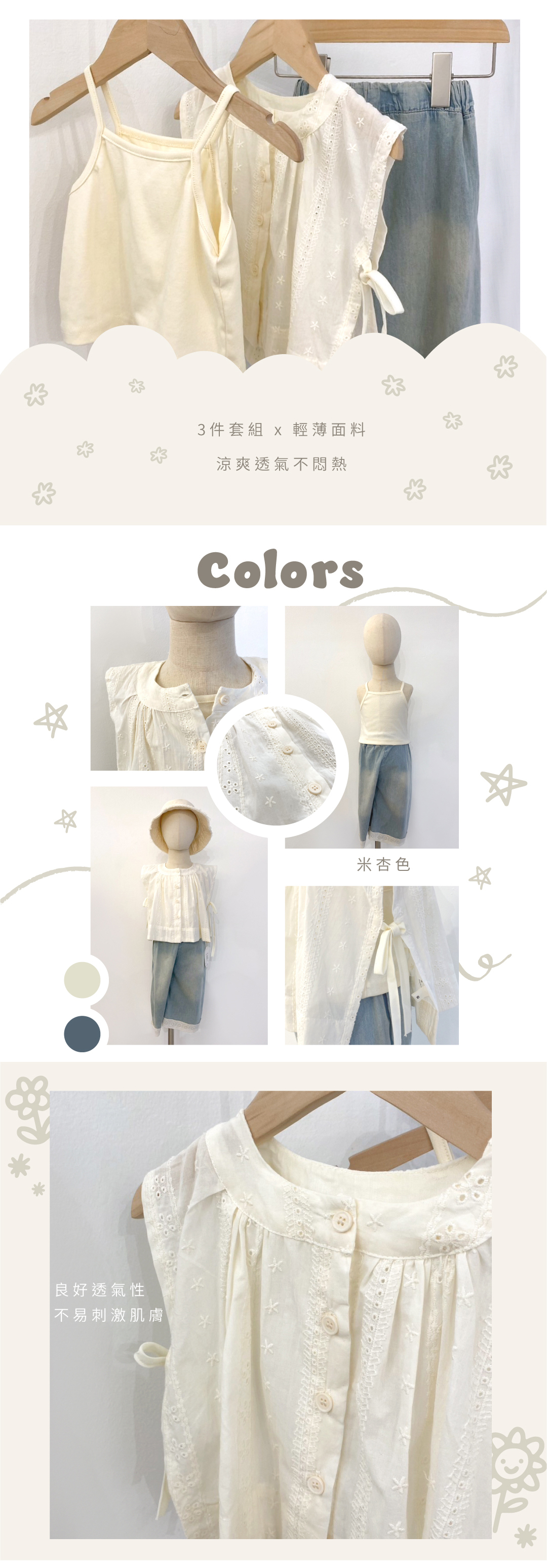 ▹上衣是鏤空雕花,側綁帶,有內搭一件背心,不怕透、直接套上出門超方便