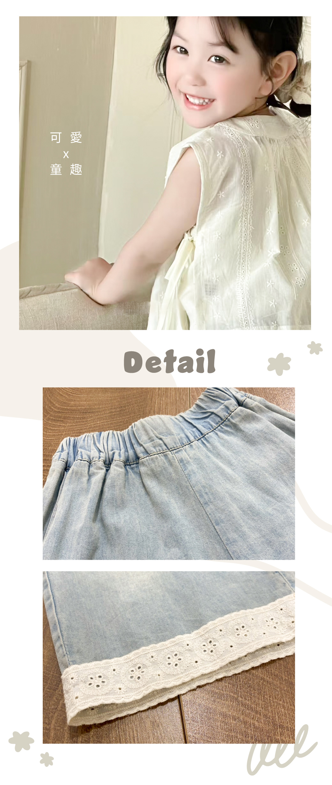 軟布牛仔,輕柔透氣,褲管還拼接了小蕾絲,好有細節