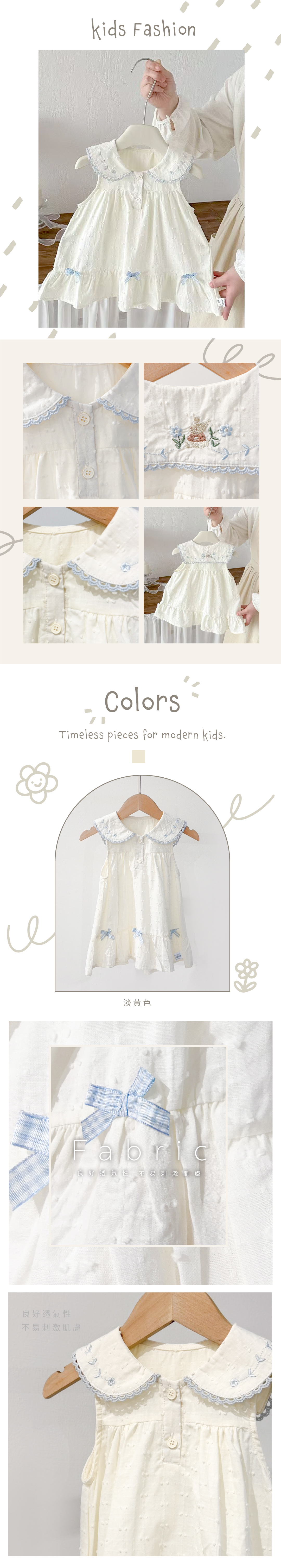 傘狀剪裁洋裝,拼接可愛刺繡圓領